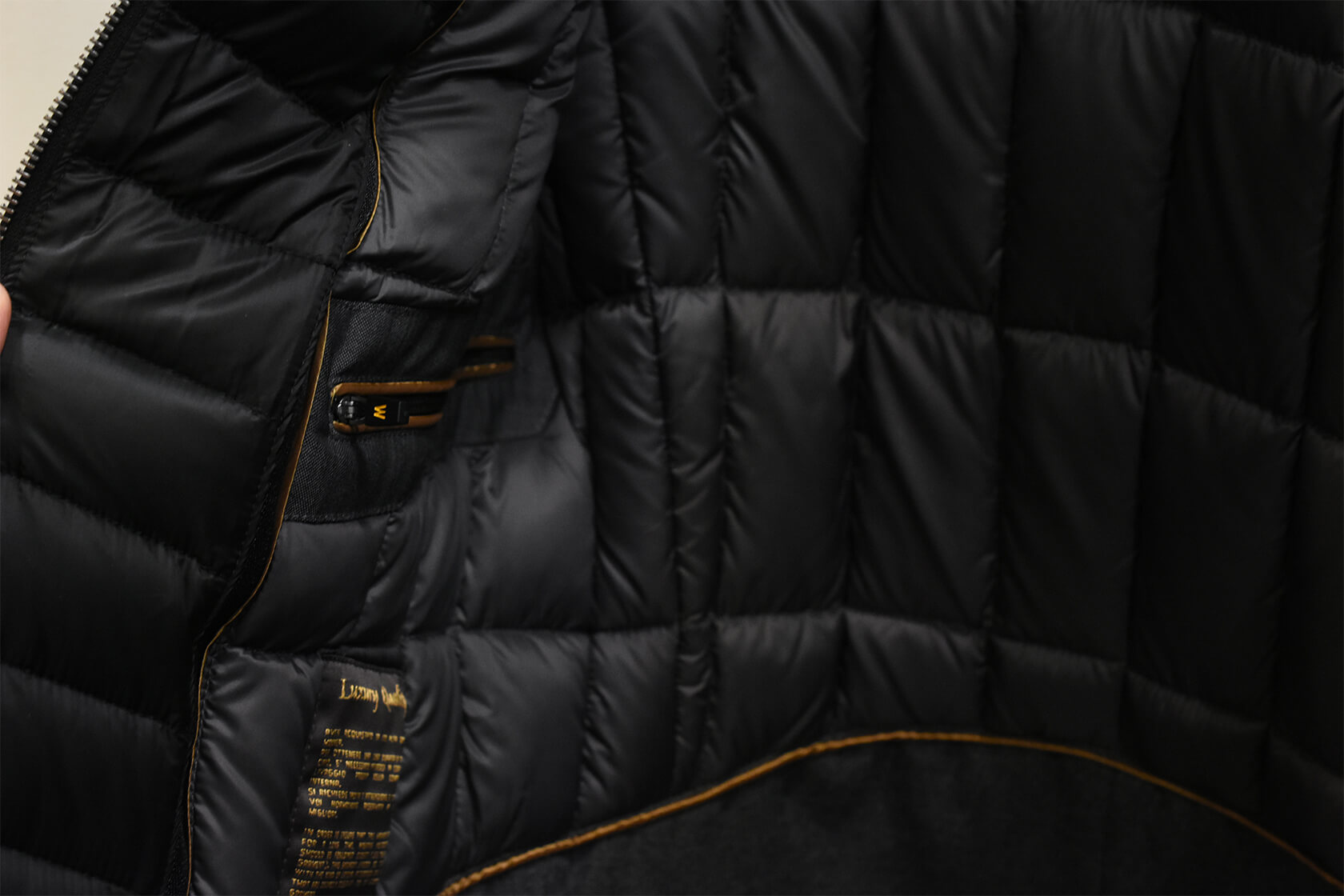 中わたは、ダウン95% フェザー5%の配分で最高級ホワイトグースダウンを使用。